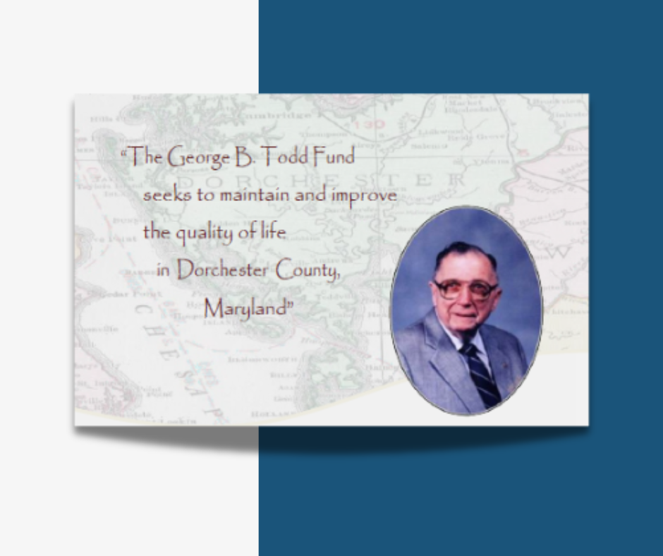 George B. Todd Fund is a component fund of the Mid-Shore Community Foundation that awards grants to nonprofit organizations serving Dorchester County. Applications are reviewed and considered by the advisors of the George B. Todd Fund on a quarterly basis. To apply, create an account/login to the Online Grants Portal and complete the application.